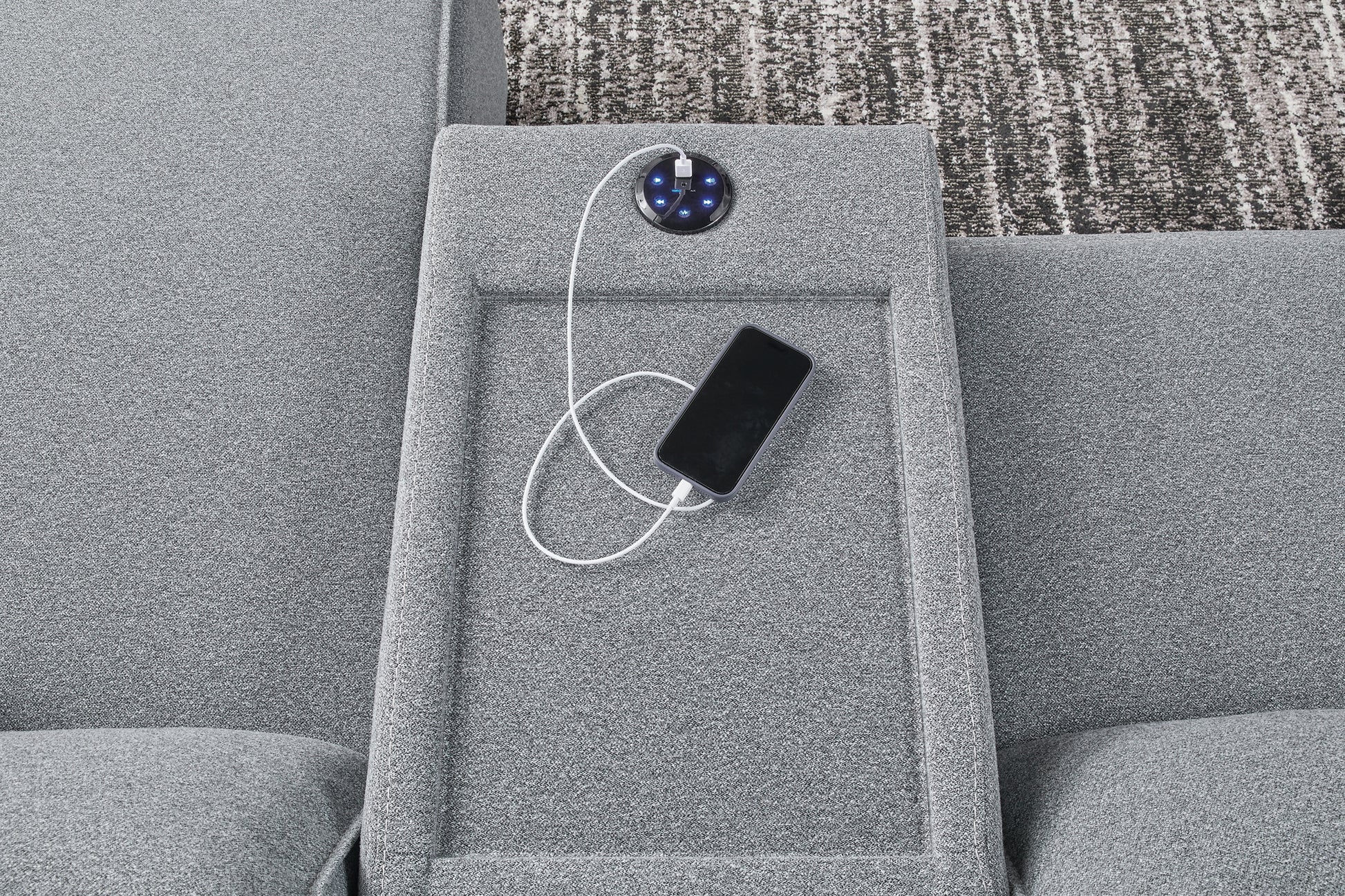 | Details | Includes 6 modular pieces: left-arm facing power reclining back chaise, power armless recliner, armless chair, console with audio system, wedge and right-arm facing power recliner, "Left-arm" and "right-arm" describe the position of the arm when you face the piece, Versatile modular pieces fit together in a variety of configurations, One-touch power control with adjustable positions, Easy View™ adjustable headrest and zero-draw USB port, Zero-draw technology only consumes power when the USB receptacle is in use, Corner-blocked frame with metal reinforced seat, Attached seat and back cushions; high-quality foam cushions wrapped in poly fiber, Polyester upholstery; Next-Gen Nuvella™ is a family-friendly fabric that is soft, easy to clean, stain-resistant and durable, Clean fabric with mild soap and water, let air dry; for stubborn stains, use a solution of 4 oz. bleach to 28 oz. water, Throw pillows with easy-to-remove zippered covers for machine washing; pillows with soft polyfill, Console with plexiglass top; built-in audio sound system with wireless connectivity; audio controls located on console; USB charging, Zero wall recliner design requires minimal space between wall and chair back, Power cord included; UL Listed | |